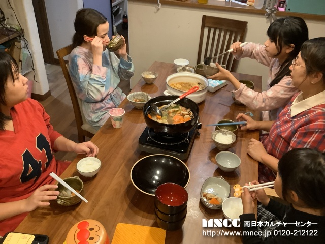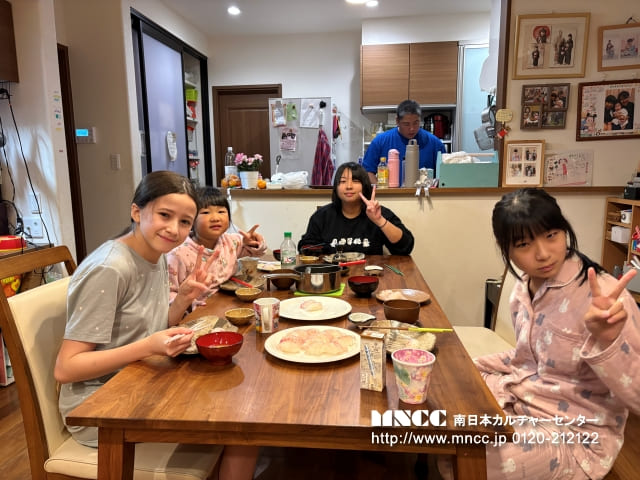 A lot of delicious food. I woke up to a nice view with the sun up. I said おはようございます to Ms Sakoda-San (ゆこさん)、Mamori-San (まもりさん)、and Wakana-San (わかなさん). Asaki-San (あさきさん) woke up a bit later. We watched Precure at 7:30 AM. It was so good. It remind me of when I watched Precure (It was called Glitter Force in America) as a child. The episode was fun to watch. After that we had Breakfast. The breakfast included Miso soup, Rice Ball, and Tamagoyaki. It was yummy.