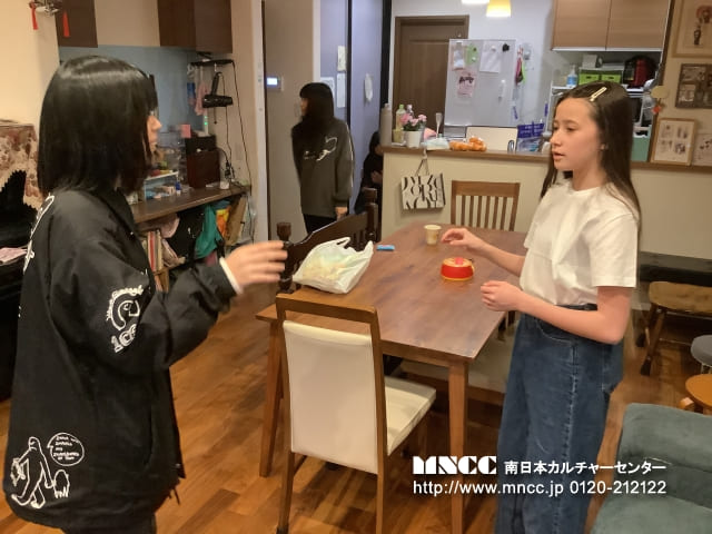 After club activities, me and Mr Sadoka-San when to go pick up Mamori-Chan from Kindergarten. She was so happy to see us. After that we got home and wash up. Asaki friends were coming over for dinner so we had to dress casual. Her friends were so nice and fun to hang out with. We made Okonomiyaki together (which was super yummy. Another MVP dish of the day :3 ) and chatted. I show them pictures of what America was like and talk about it. We even ate some snacks. I try this chocolate cover Strawberry candy which made my tongue cold and had a brain freeze. I text “See SOS for my tongue” to everyone which everyone laughed, including me. Sadly our night came to an end when they all went home. We made sure to exchange Instagrams.