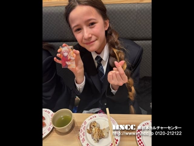 After school, I took a couple pictures with my friend Miffee (I spelt it wrong didn’t I. ごめんなさい). She had her Mettaton plush, and I had An, Nene, and Kohane. Then we head back to class to say goodbye to each other. For the next couple hours, I hang out with Hina and classmates. やまとさん give me a min test on Katakana words. I totally ace that test 🥲👍. I also met new friends today, two of the names are あきやまさん and あおい. I enjoyed my time hanging out with them. Then Sushiro Time!!!!!