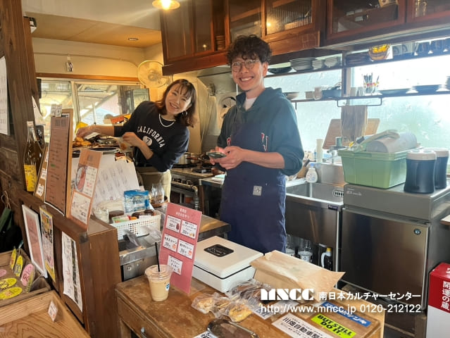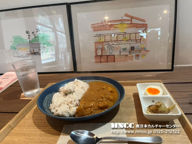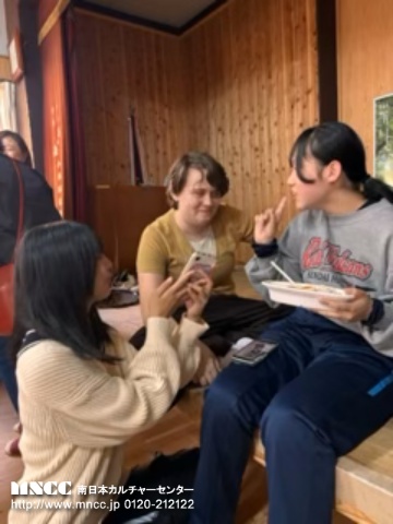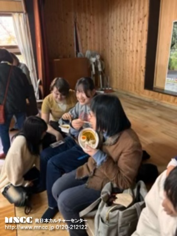 I helped scoop the rice, Satoshi poured the curry, added the egg and seasonings, and Haruka sold it and counted the money. We worked together well! But then Itoha wanted to take a walk, and us girls were hungry, so we decided to get something else to eat and then go for a walk and enjoy the beautiful colors.