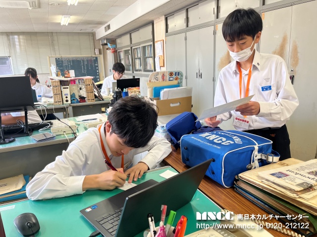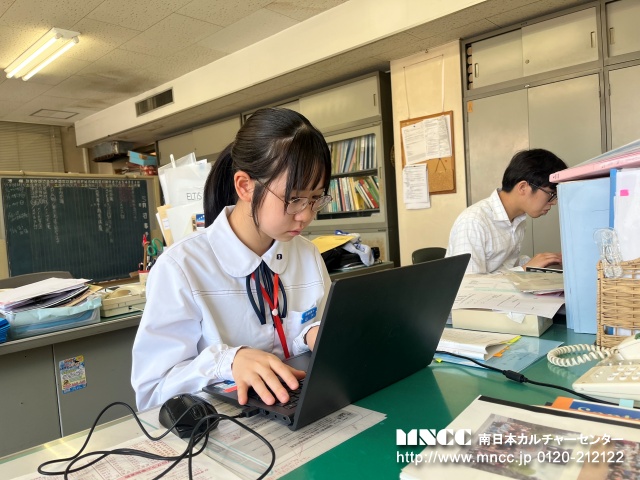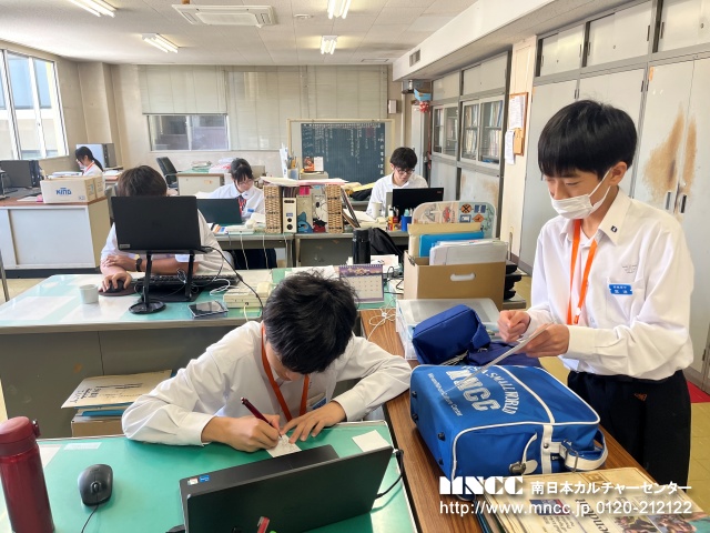 職場体験期間は、2025年5月13日から15日で、主にホームステイに使用する書類の準備、文章入力、50周年記念プロジェクトで使う写真のスキャンなど、たくさんの仕事を手伝ってくれました。