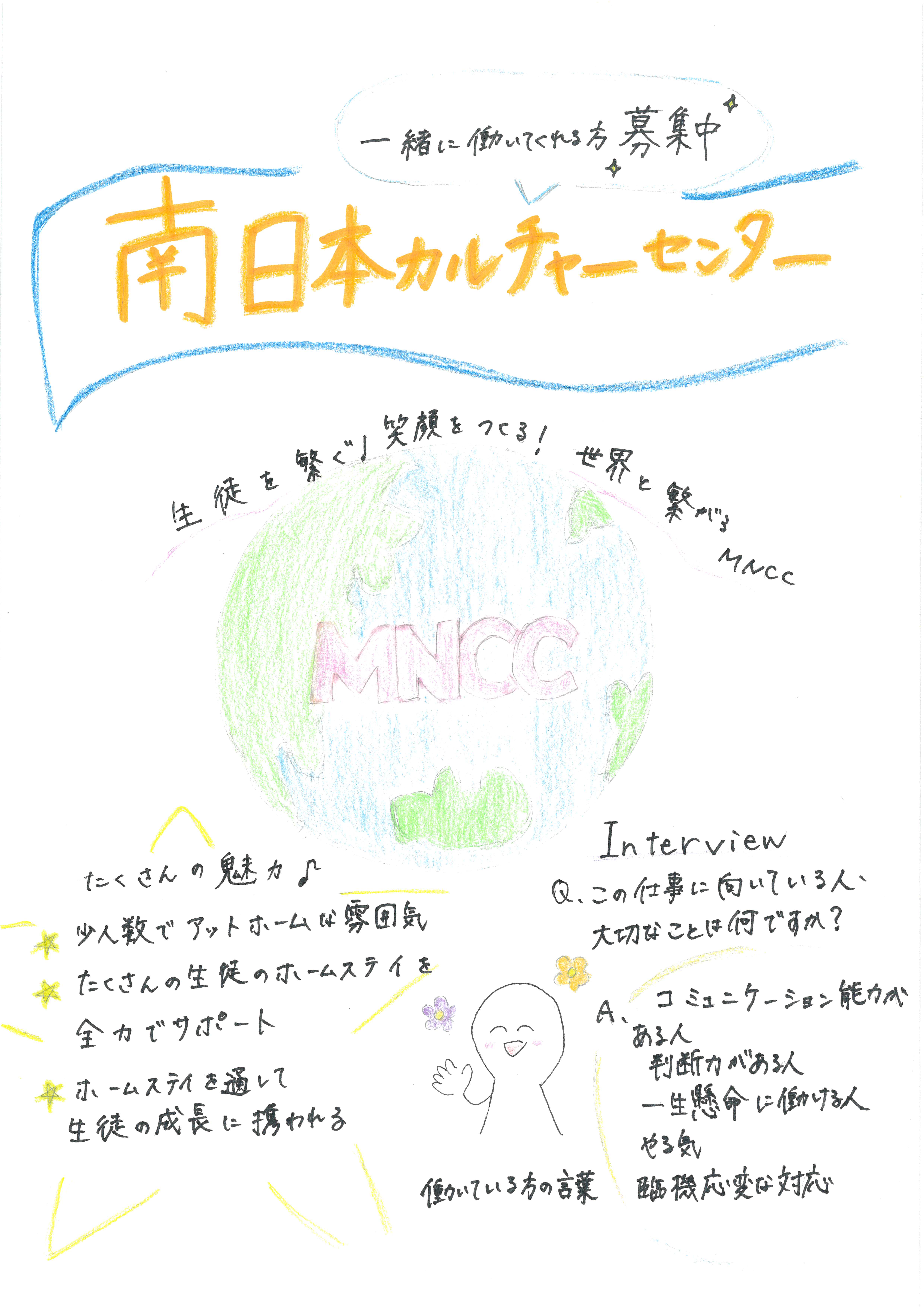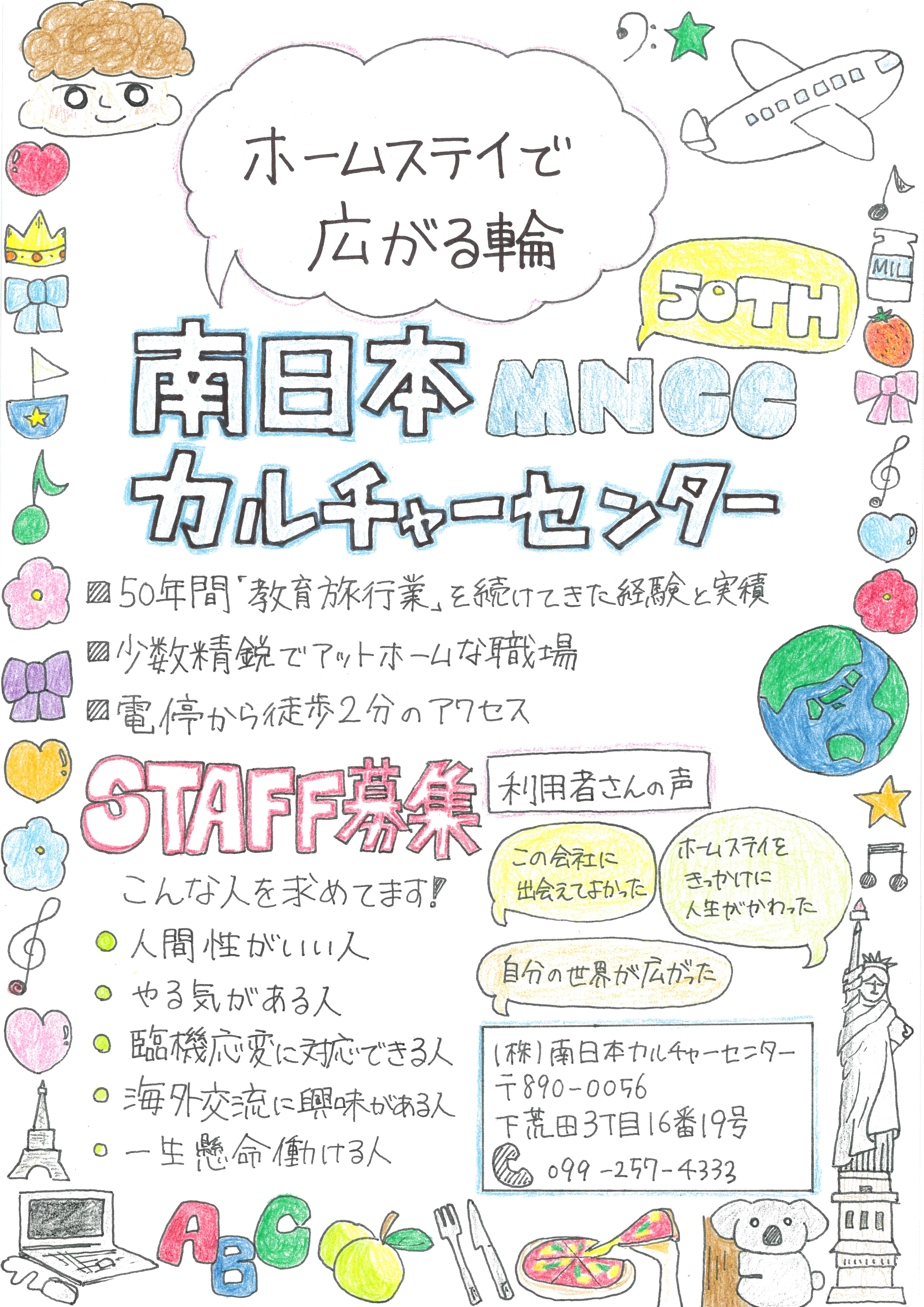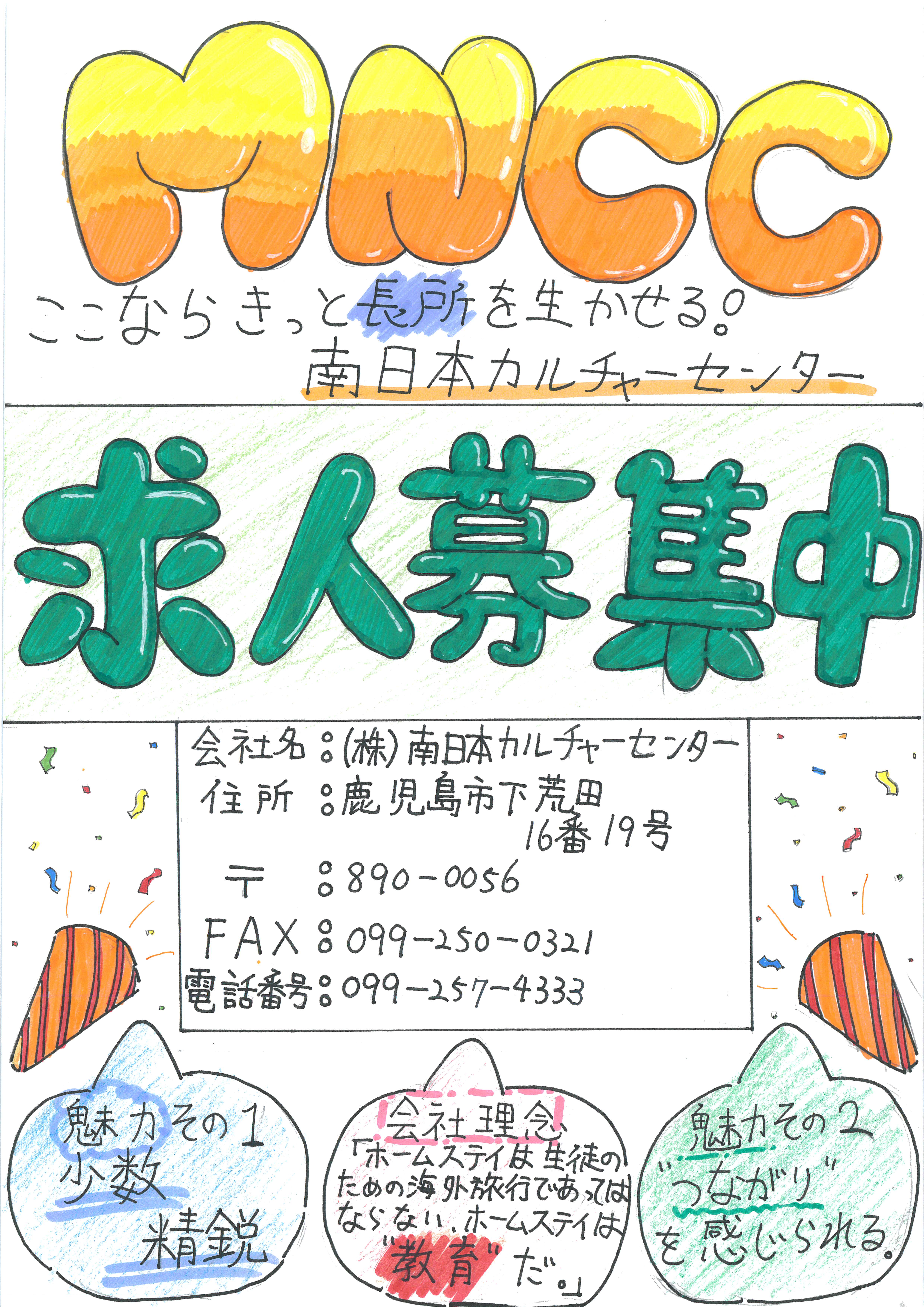 職場体験終了後、参加していただいた5名の生徒さん達が、弊社の求人ポスターを作成してくださいました。